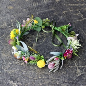 This stunning flower crown collection focuses on leafy greens and includes faux natives and wildflowers in naturals, yellow, purples and pinks. Perfect for outdoor photo events. Australian natives are a sure favourite, celebrating Australia’s beautiful bush colours.
